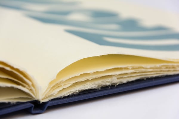 Grafikband 11-teiliges Leporello mit Holzabriebdrucken von Gisela Oberbeck und dem spanischen Originaltext, gedruckt auf handgeschöpftem Japanpapier,